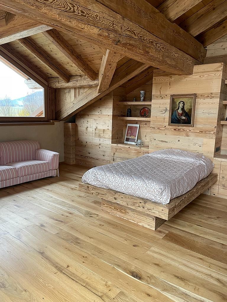 Ampia scelta tra: rovere, abete, larice. Possibilità di scegliere tra prefinito a tre strati o massello. Produzione artigianale su misura e finiture personalizzabili.