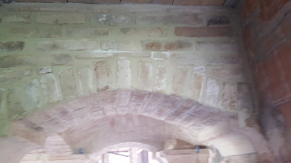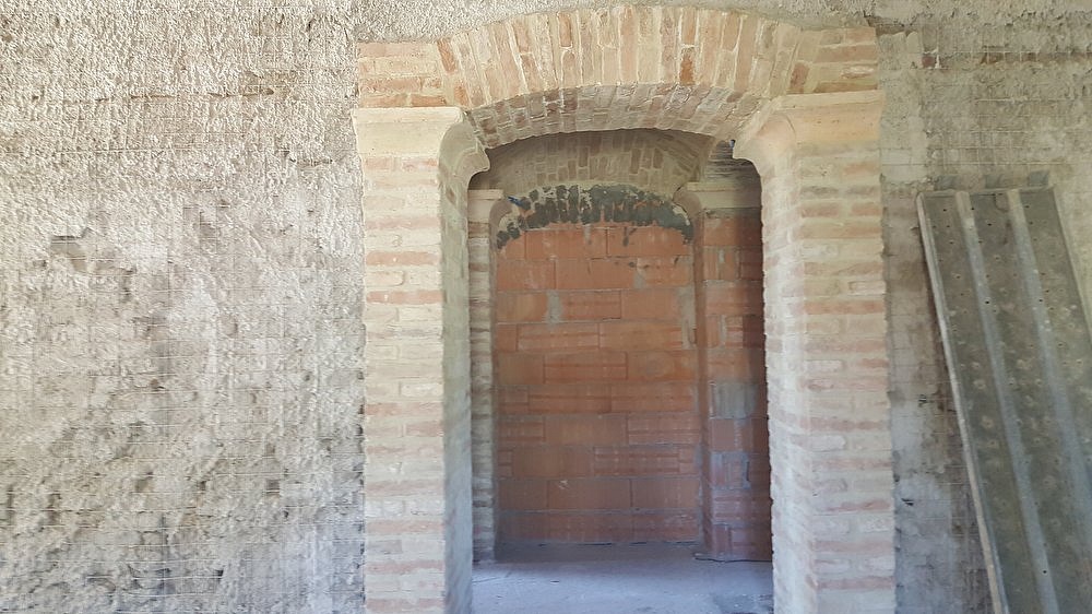 Colonne e volte allestite con mattoni di recupero