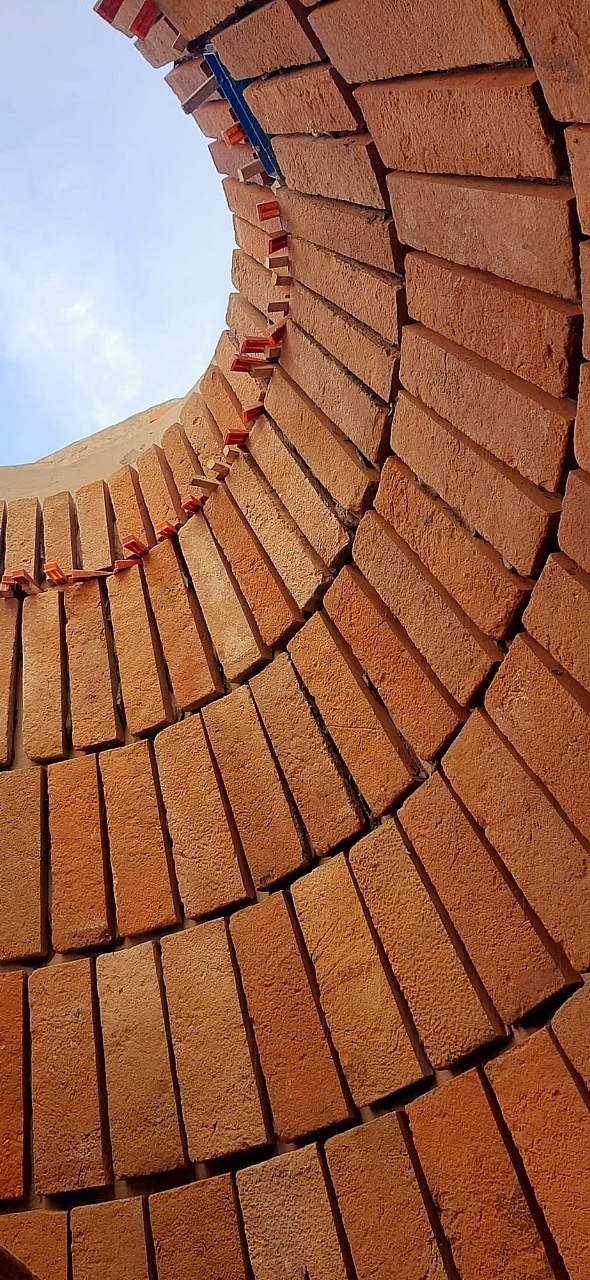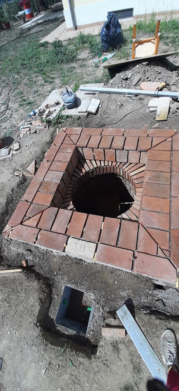 Rivestimento di un antico pozzo con tavelle antiche di recupero.
