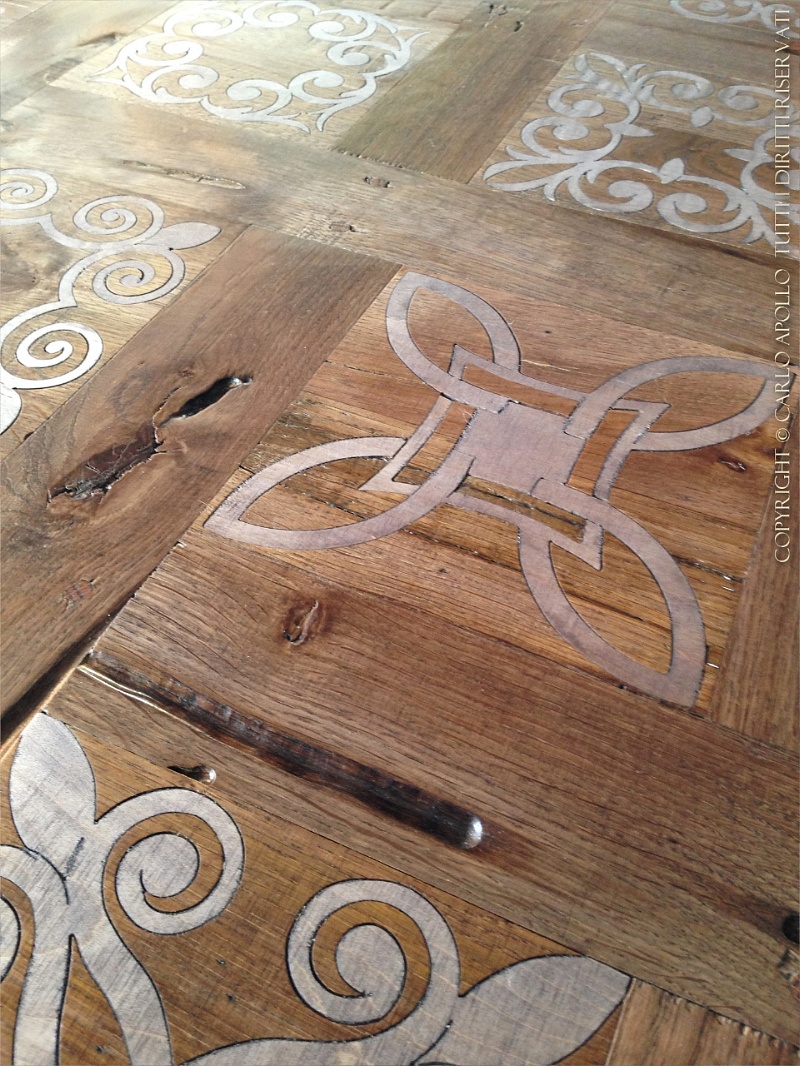 altri nostri Prodotti: Pavimenti intarsiati, Chevron in legno antico, parquet a spina di pesce, listoni in legno, versailles intarsiati, quadrotti di recupero
