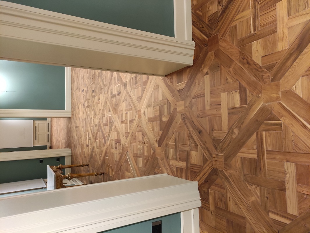 La posa in opera del Pavimento Versailles in Teak Antico richiede maestria e attenzione ai dettagli, per garantire che il disegno complessivo emerga in tutto il suo splendore. Una volta installato, questo pavimento non solo impreziosisce l'ambiente con il suo fascino antico ma offre anche una superficie estremamente resistente e facile da mantenere, adatta a sopportare il passaggio e l'usura del tempo mantenendo inalterato il suo aspetto.
