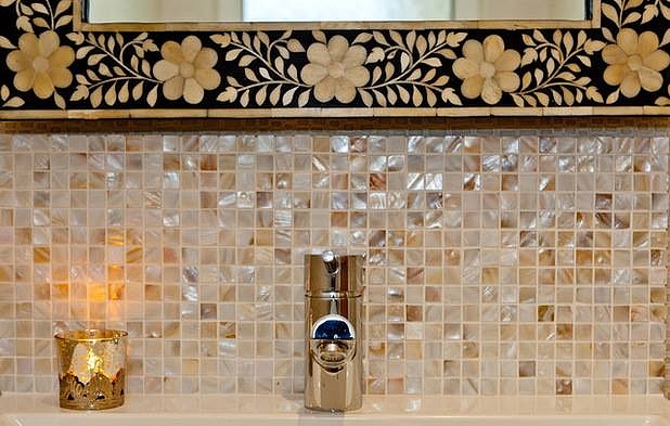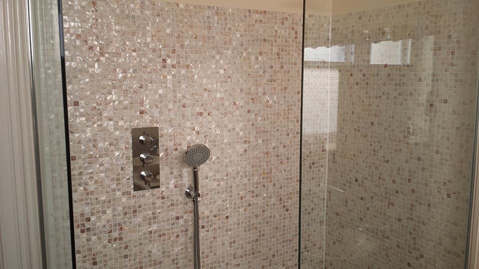 Mosaico in vera madreperla montato su rete nel formato 30x30