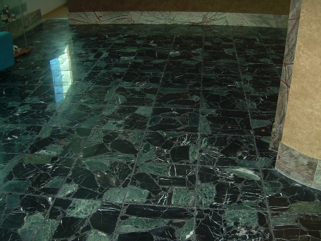 Mosaico creato con pezzi da 1cmq sul posto con immagine creata dal parroco .