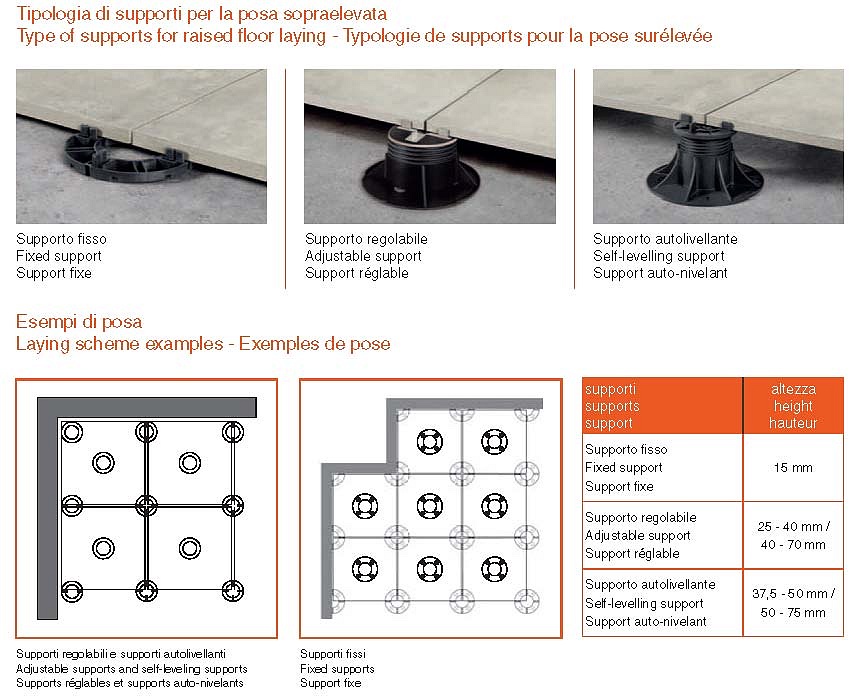Subito calpestabile.I supporti portanti di tipo fisso, regolabile o autolivellante,