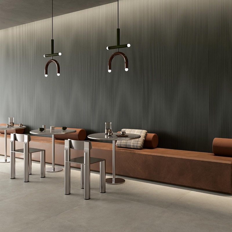 Le piastrelle di questa collezione si distinguono per i loro grandi formati, con misure audaci di 120x280cm e uno spessore di soli 6mm, pensate per rivestire ampie superfici con eleganza e continuità. Ogni lastra, caratterizzata da un design ‘seamless’ ovvero senza soluzione di continuità, facilita la posa e permette composizioni armoniche e senza interruzioni visive, creando un infinito movimento grafico grazie all'accostamento delle lastre.