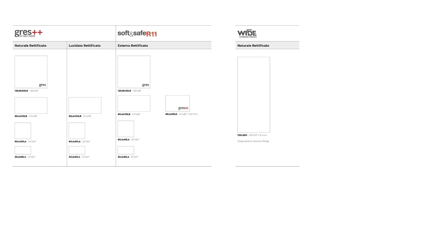 Sinai è disponibile anche nella versione "Soft&Safe R11" per esterni, in spessore 9mm e nella versione GresX2 da 2cm, offrendo una superficie antiscivolo, facilmente pulibile e morbida al tatto, adatta a pavimentazioni esterne in continuità con gli interni o per applicazioni dirette su erba, ghiaia, sabbia. Queste caratteristiche la rendono ideale per progetti residenziali e commerciali di alto livello che cercano un impatto estetico naturale e prestazioni tecniche elevate.
