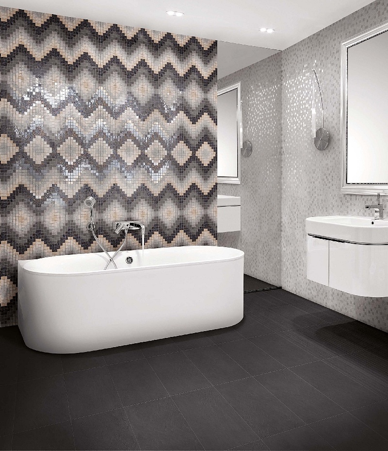 Formato: il mosaico viene fornito assemblato su fogli di cm 30x30 (il formato della tessera è di circa 2,3x2,3 cm). La piccola dimensione permette anche di rivestire superfici curve e il montaggio su rete permette di tagliare il foglio in strisce di diverse altezze per posare il mosaico nel modo desiderato.