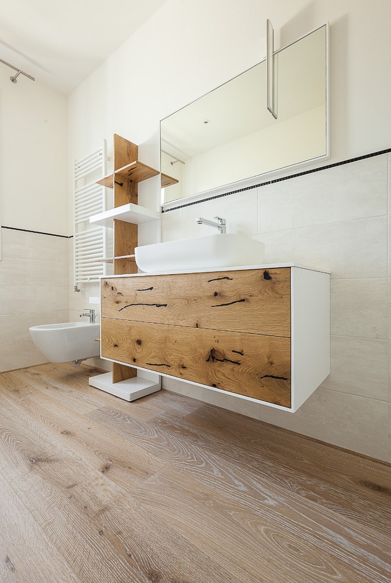 La scelta della tonalità naturale decapé bianco esalta la naturalezza del legno in un ambiente moderno.