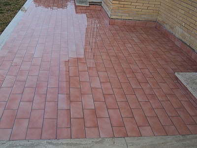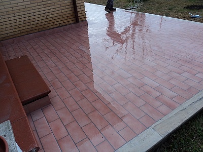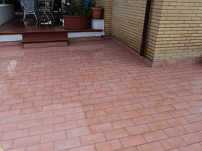 Posa in opera pavimenti gres porcellanato , incollati e montati tipo cortina , montati sul terrazzo .