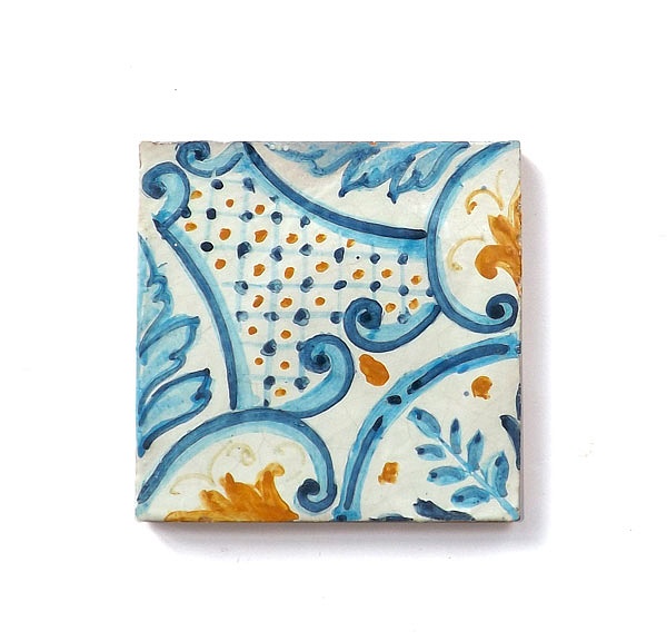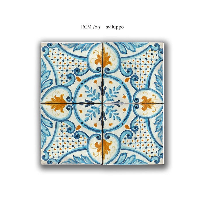 Mattonella in maiolica dipinta a mano decoro arcaico,cod.RCM 09