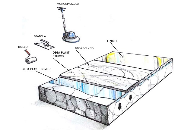 Pavimenti in resina applicati a spatola con l’utilizzo di tecniche tradizionali e adatti alla realizzazione di superfici monolitiche con effetti di spatolatura più o meno evidenziate.