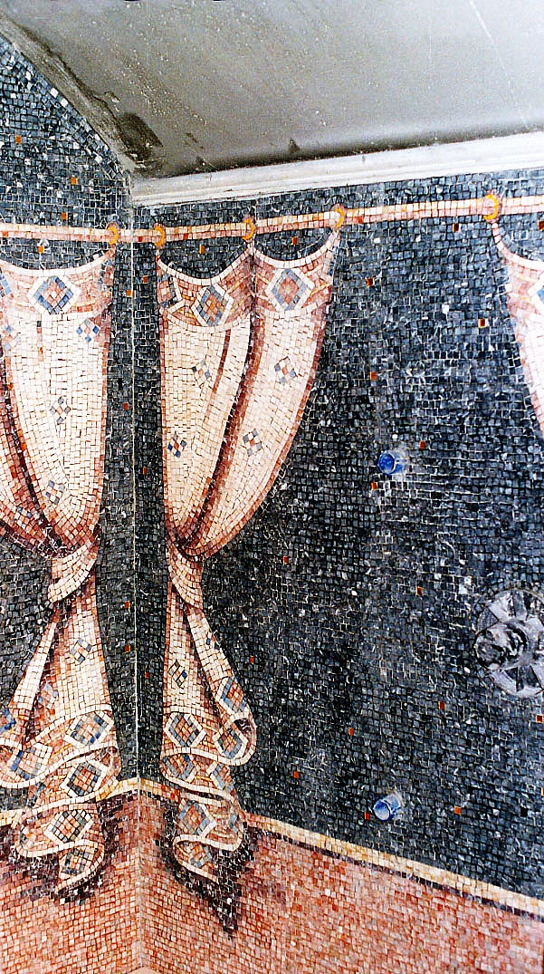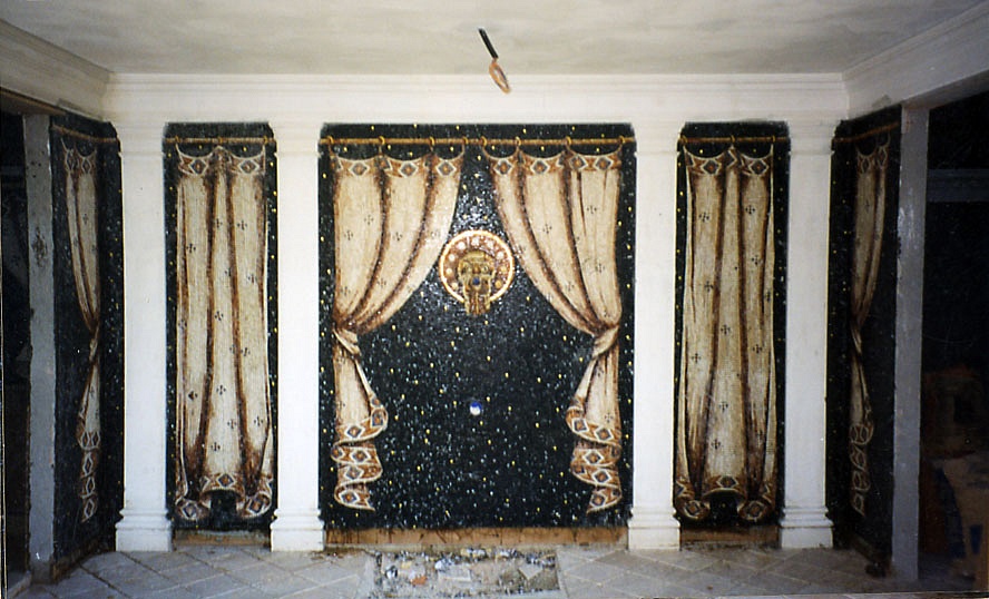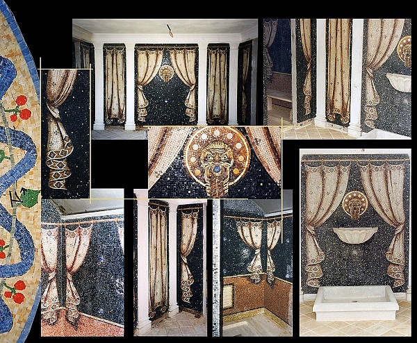 Rivestimenti bagno a mosaici in marmo. Tutto il rivestimento bagno è stato eseguito in loco seguendo i disegni del cliente.