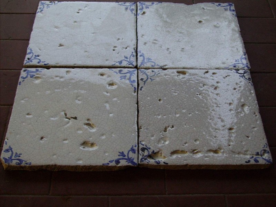Artigianali Rivestimenti cucina dipinti a mano, fondo bianco e decori di colore blu