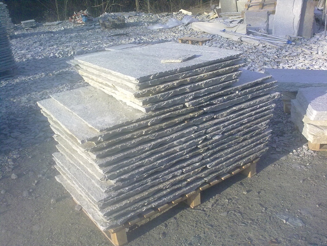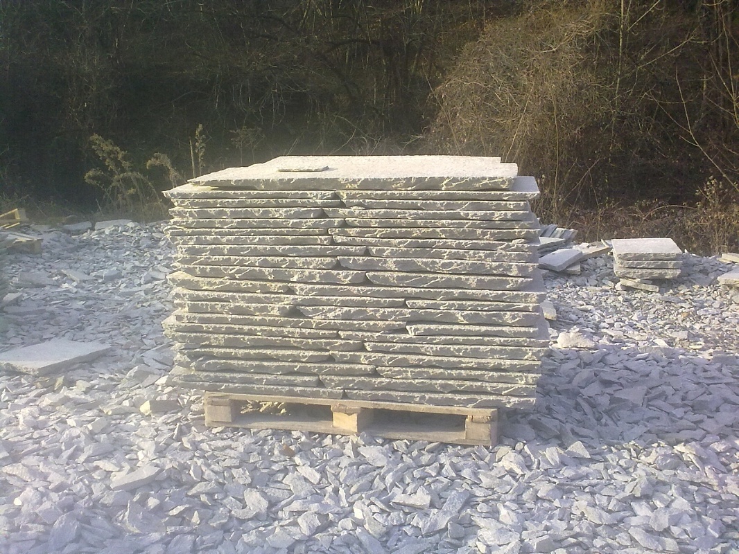 1) lose,pietra per realizzazione di tetti. il colore della pietra è grigio-misto.