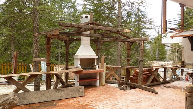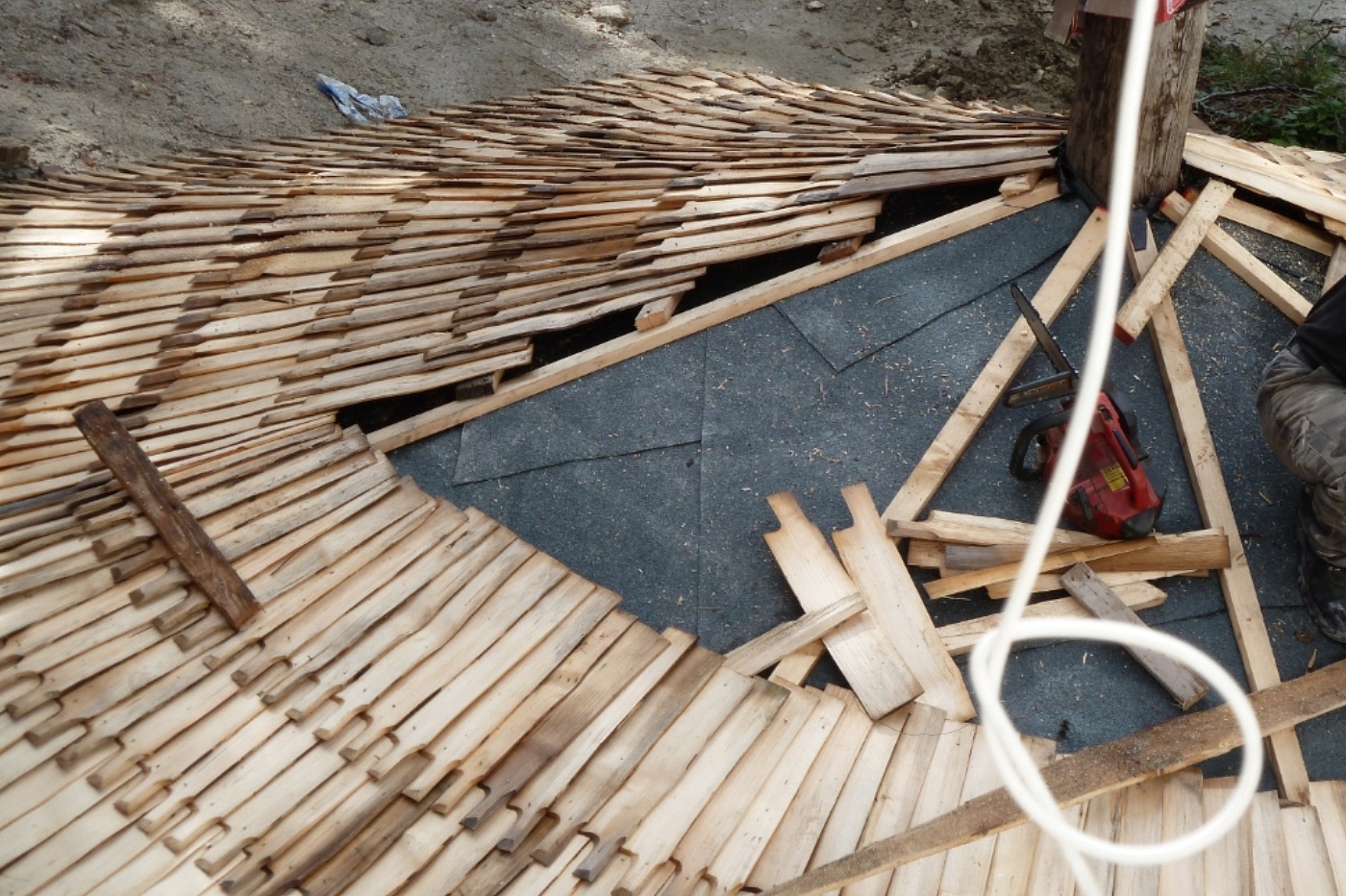 come anche le scandole asciate con l'antica tecnica del colpo unico lungo la fibra per convogliare l'acqua naturalmente