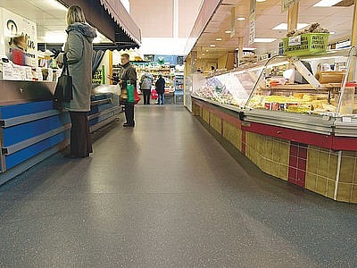 ppavimento vinilico spalmato, antiscivolo, antistatico,antibatterico, flessibile, saldabile, aspetto puntinato, multicolore, superficie goffrata. Additivato con Supratec + rinforzato con Poliuretano, prodotto che ne facilita la manutenzione