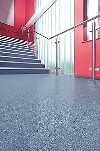 Pavimento vinilico spalmato, antiscivolo, antistatico, antibatterico, flessibile, saldabile, aspetto puntinato, multicolore, superficie goffrata. Additivato con Supratec + rinforzato con Poliuretano, prodotto che ne facilita la manutenzione