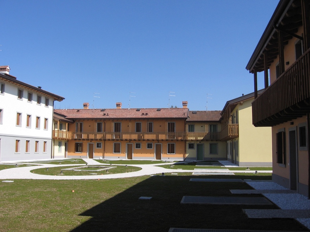 L’area oggetto dell’intervento è situata sulla sommità di una panoramica collina a San Daniele del Friuli. Perciò è protetta da norme che tutelano gli aspetti paesaggistici ed ambientali. Sull’area era presente un obsoleto opificio non più produttivo che è stato demolito. La progettazione è stata svolta dall’ambito urbanistico, a quello architettonico, strutturale ed impiantistico. La maggior difficoltà progettuale riscontrata è stata quella di inserire la grande dotazione volumetrica edificatoria assegnata all’area nella maniera più armonica ed integrata possibile al territorio. La scelta di realizzare edifici sul modello tipologico della corte friulana con materiali e forme tradizionali sono state imposte dallo strumento urbanistico comunale. Il complesso edilizio comprende 20.000 mc di volumi fuori terra dove sono state ricavate 60 unità residenziali, direzionali, ed alberghiera e 15.000 mc di vani interrati dove trovano posto le autorimesse e i servizi.
