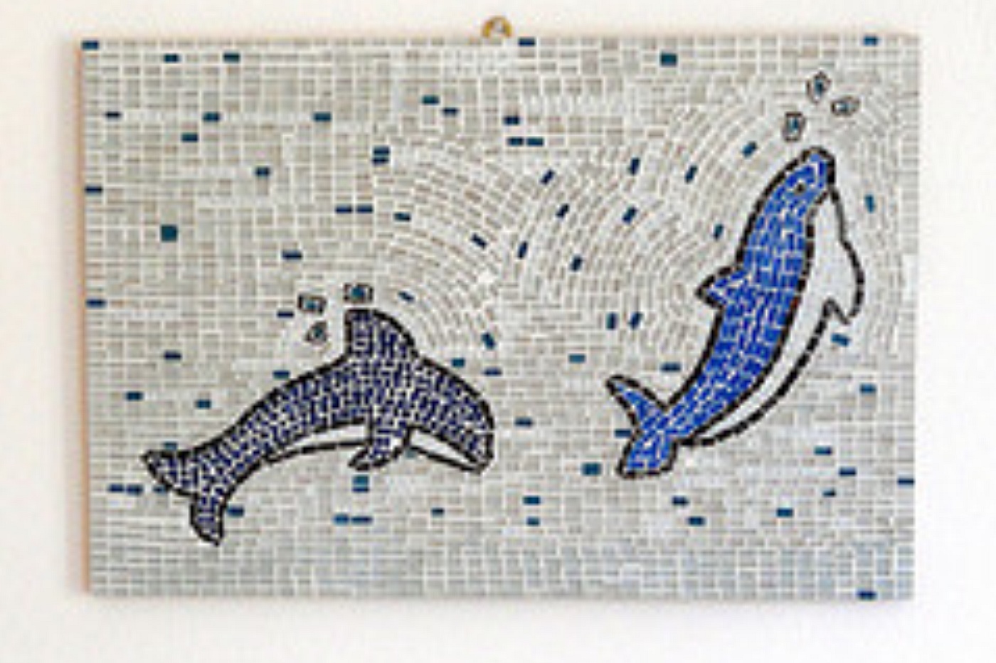 Mosaico raffigurante dei delfini con stuccatura bianca