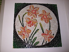 Mosaico raffigurante i fiori narci, completo di stuccatura