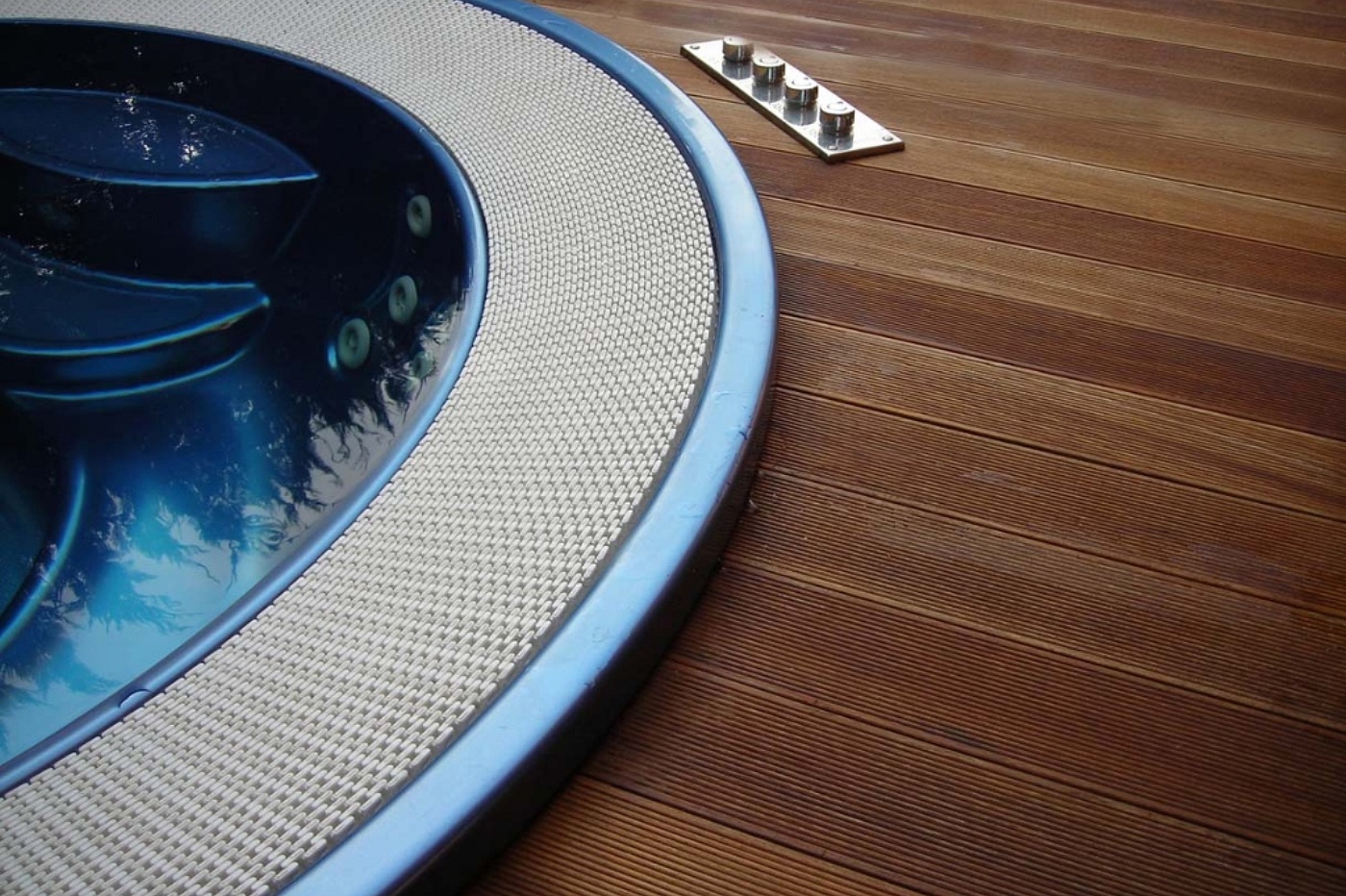 Pavimento per esterni a listoni in TEAK a fuga aperta.