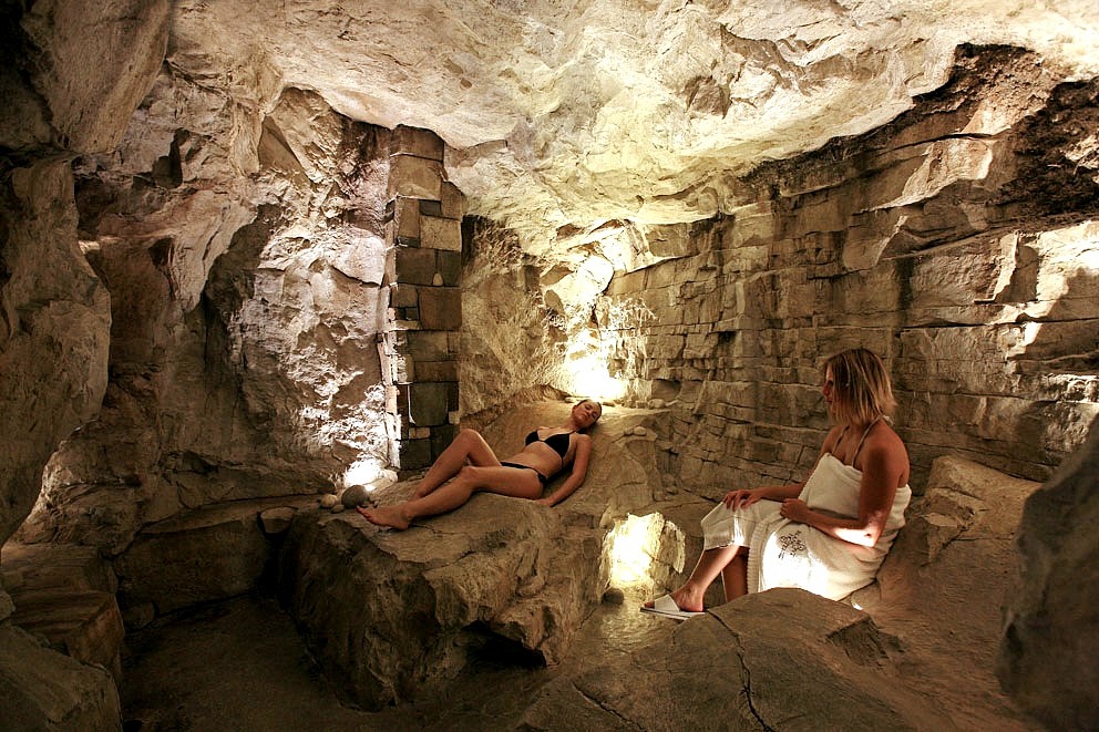 Il tunnel misura ben 40 metri,non è rettilineo ma cambia spesso direzione,ai lati si aprono varie grotte una diversa dall'altra,ognuna abidita ad uno specifico trattamento.