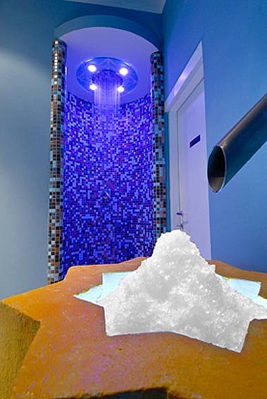 Il centro benessere è dotato di doccia cromoterapica preparatoria, bagno turco all’essenza di mare, passeggiata in tunnel polisensoriale accompagnati da luci, profumi di oriente ed un appassionante alternarsi di acqua nebulizzata, pioggia, getti e cascata, sauna e cascata di ghiaccio, ed una panoramica passeggiata kneipp.