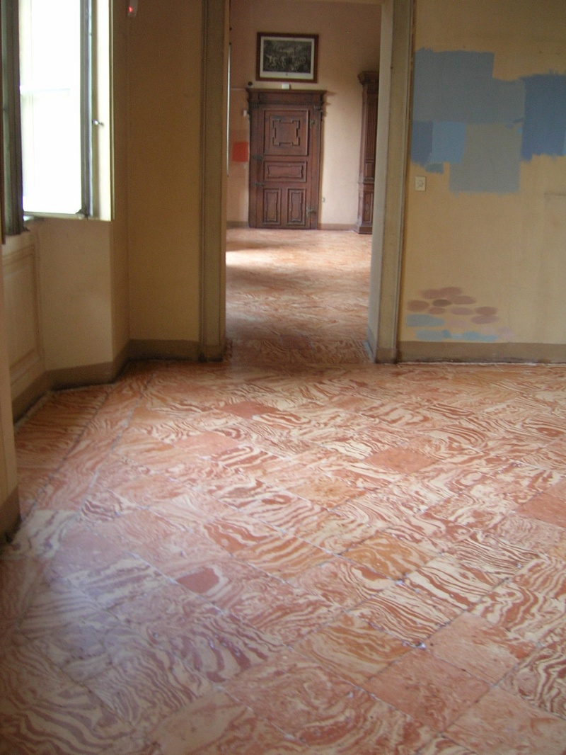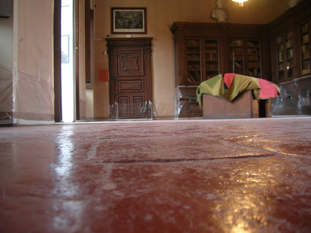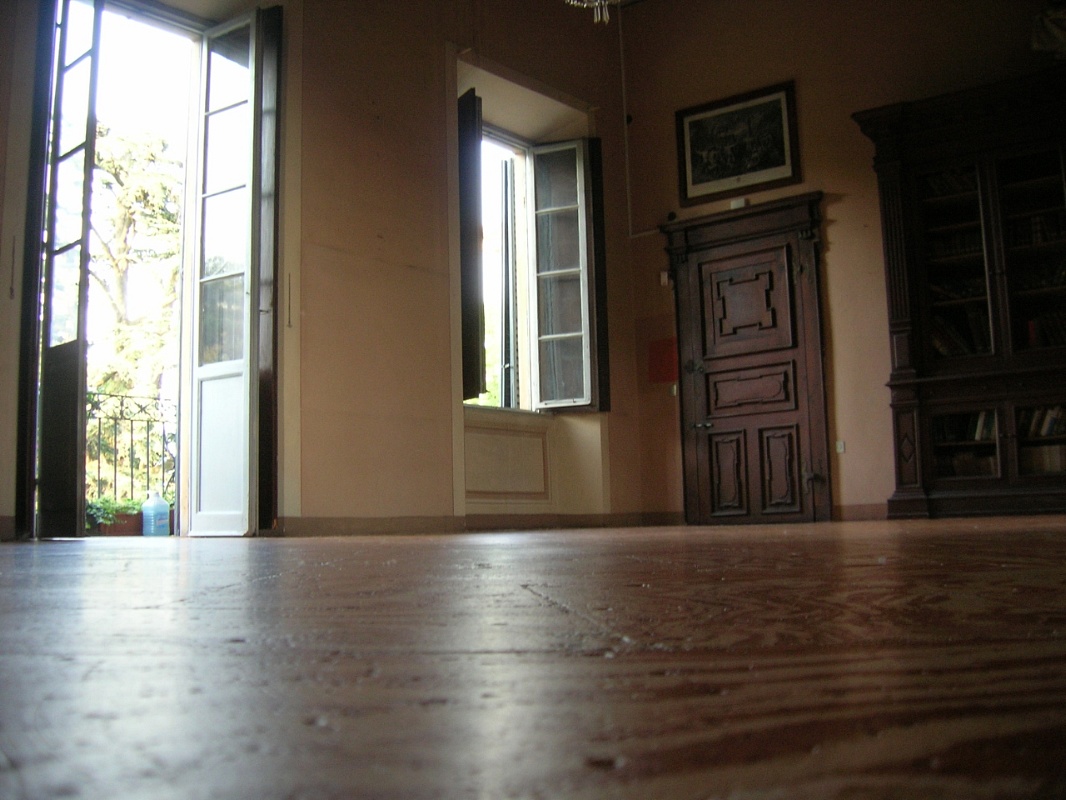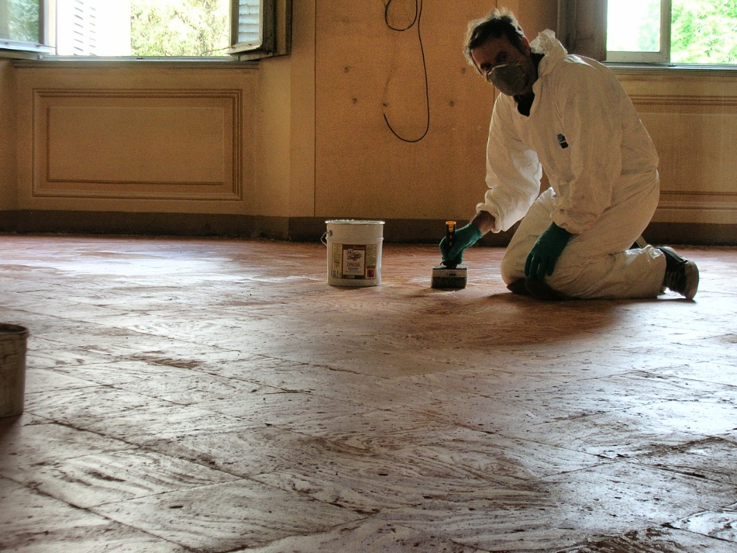 Carteggiatura eseguita con metodi artigianali senza alterare la struttura del pavimento.