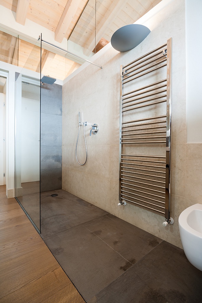 All'esterno abbiamo il Cubetto Col Martin naturale che si lega con il travertino Colorado nella pavimentazione pedonale.