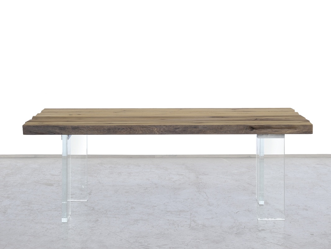 Linee essenziali che risaltano la superficie naturale del legno, segnata da venature, nodi, fessure, rilievi e avvallature, segni del tempo o impressioni lasciate dall’opera dell’uomo.