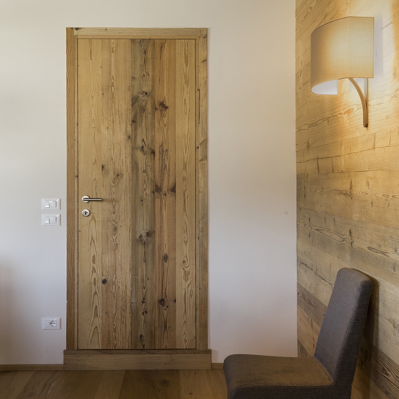Possibilità di scegliere tra diverse essenze di legno antico: rovere, castagno, larice, abete.