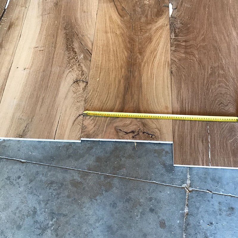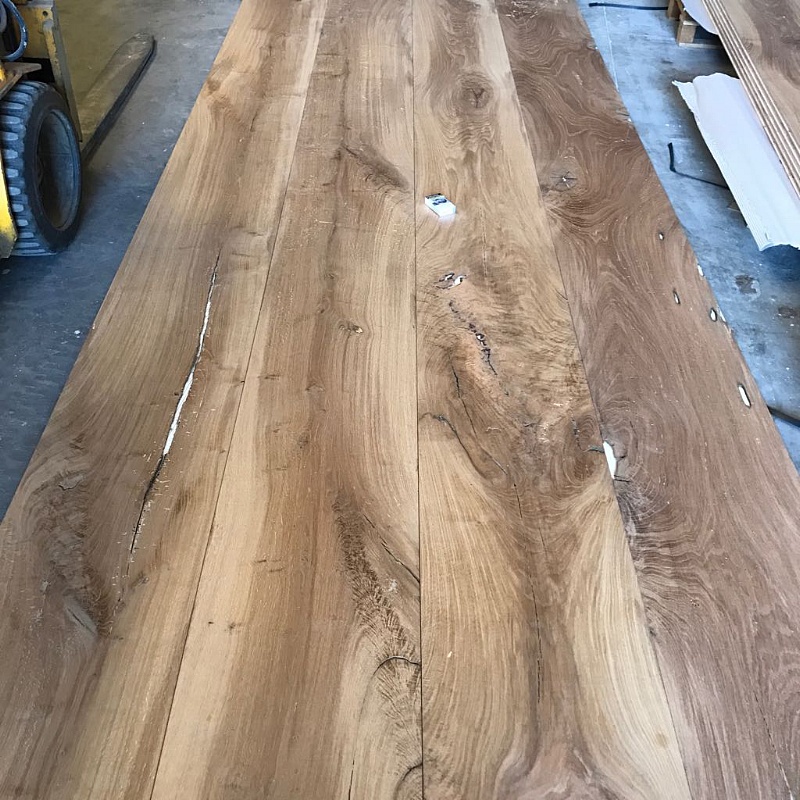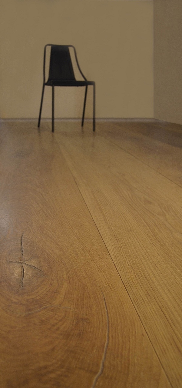 Il pavimento in rovere antico a maxi listoni viene prodotto in prefinito a tre strati con spessore tra i 20 e i 22 mm.