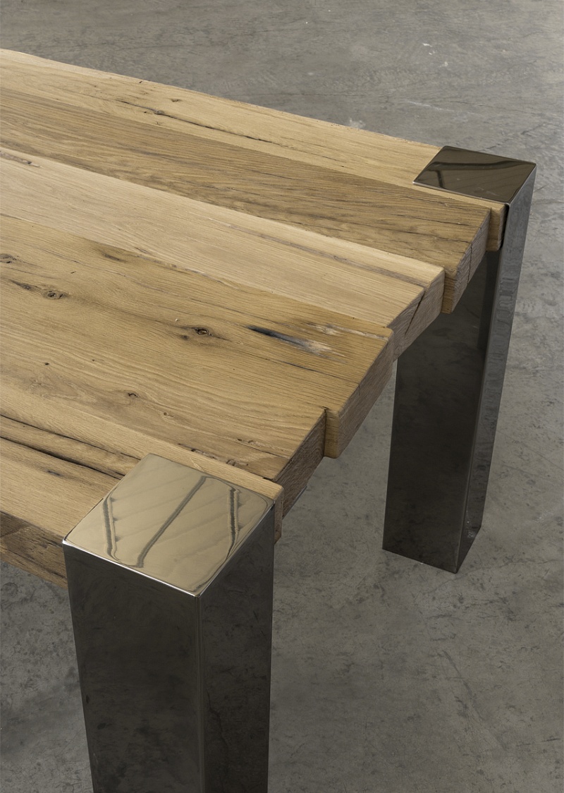 Linee essenziali che risaltano la superficie naturale del legno, segnata da venature, nodi, fessure, rilievi e avvallature, segni del tempo o impressioni lasciate dall’opera dell’uomo.