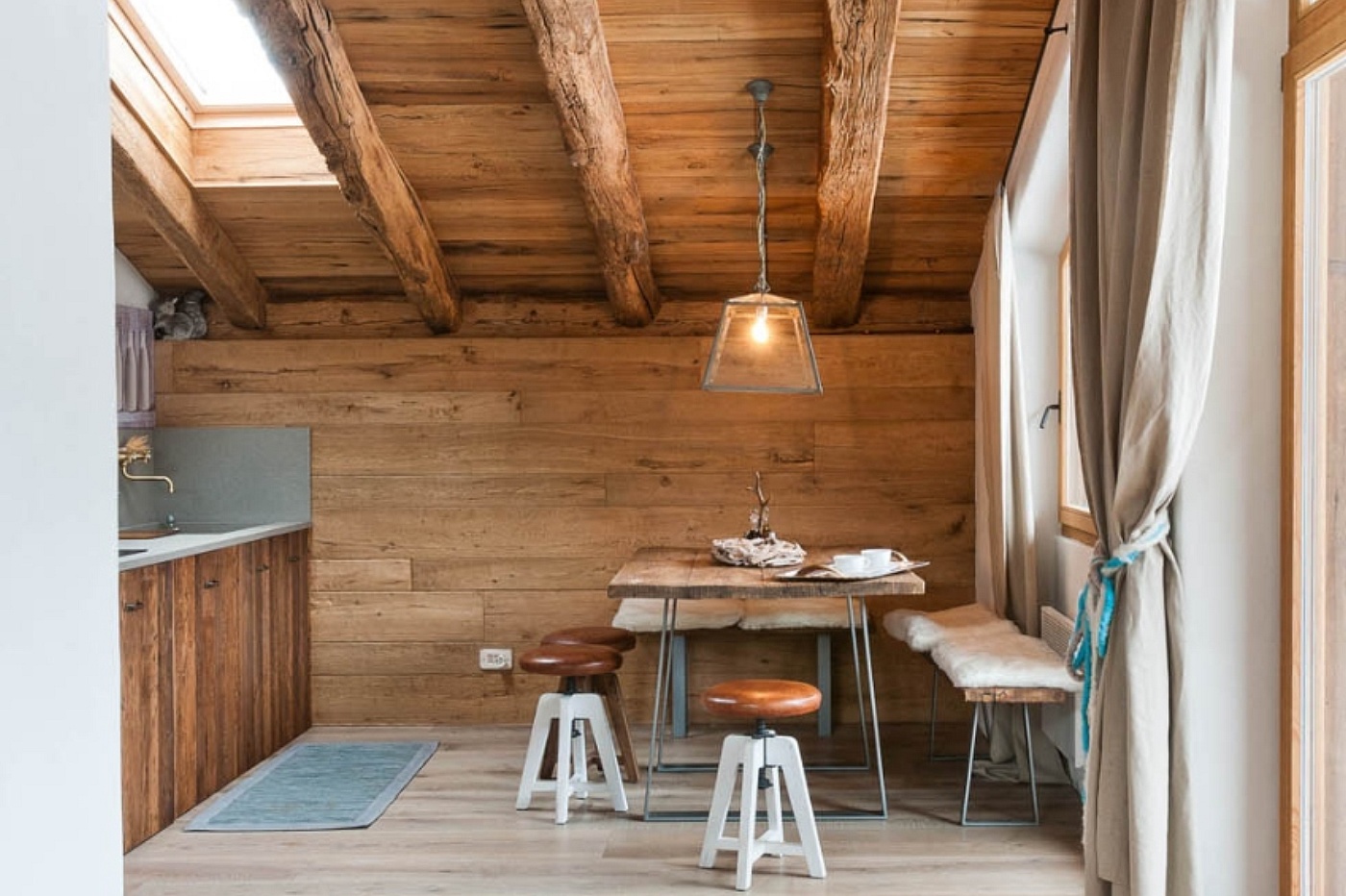 Possibilità di scegliere tra diverse essenze di legno antico: rovere, abete, larice.