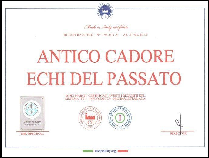 Lo fa nel modo più moderno e impegnato, considerando che la tecnologia è comunque oggi parte imprescindibile della nostra cultura e della nostra realtà, tecnologia utilizzata per ottenere colle atossiche prive di formaldeide, cere naturali, vernici e tinte a base d’acqua. Le certificazioni di prodotto effettuate dal CATAS dimostrano il pieno rispetto della normativa in materia di BIO-ARCHITETTURA. Dal 2010 Antico Cadore è stata certificata anche da GREEN BUILDINGS proprio nella filosofia BIOARTECH.”