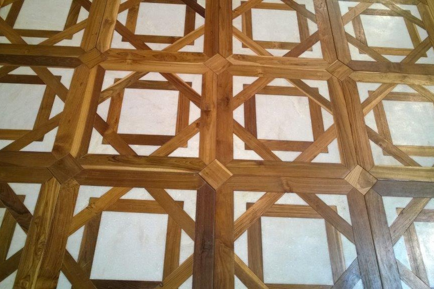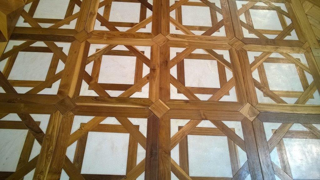 pavimento in teak antico e marmo 50x50x2