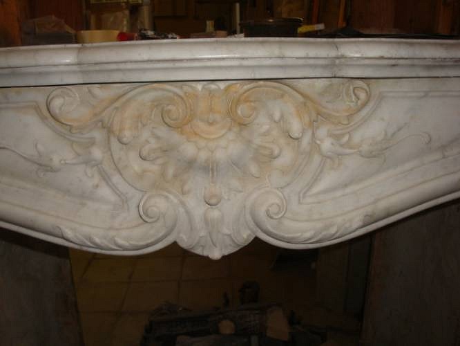 camino luigi xv "trois glandes" in ottimo stato di conservazione generale, marmo bianco di carrara, epoca 1860 circa, provenienza parigi.