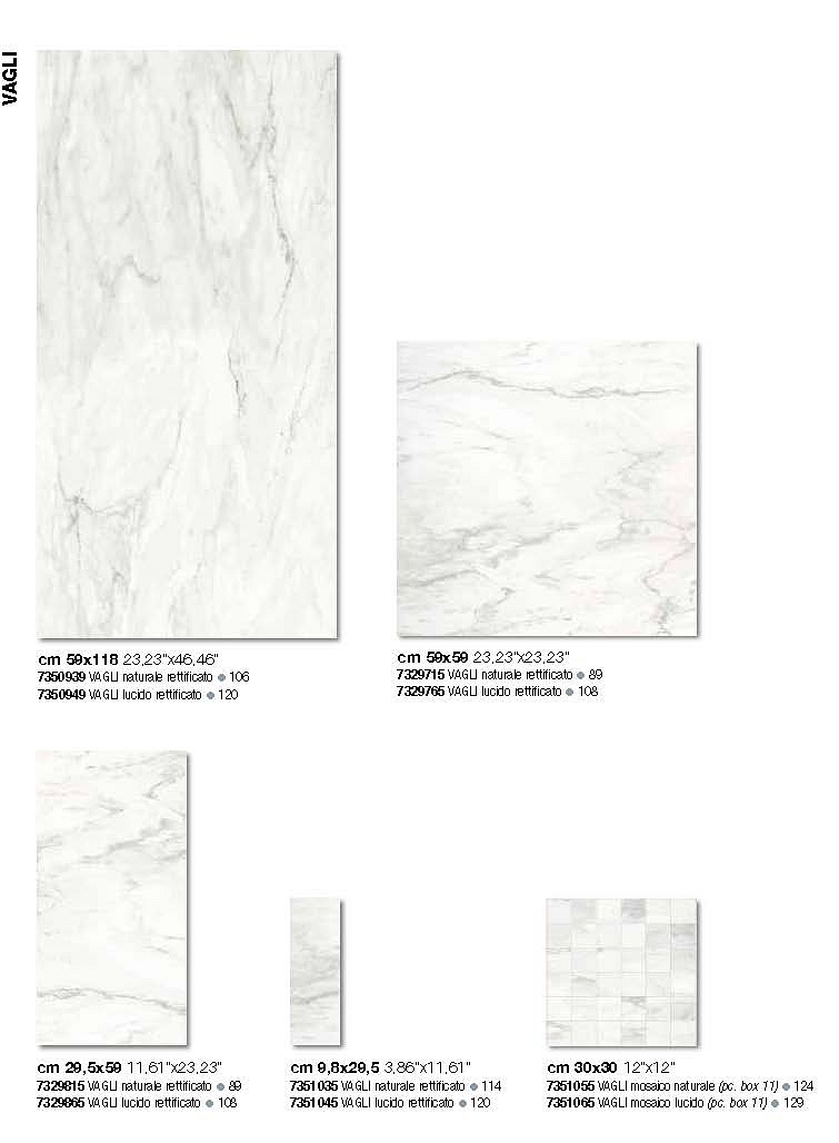 Adatto per tutti gli ambienti eleganti e raffinati ove occorre un tono classico . Le piastrelle sono utilizzate anche per il rivestimento. Formati: 59x118 /59x59/29.5x59/9.8x29.5/30x30 mosaico su rete