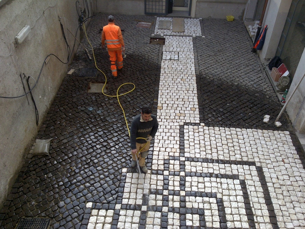 Realizzato con Selciato Romano da recupero e selci di pietra di Trani anticati