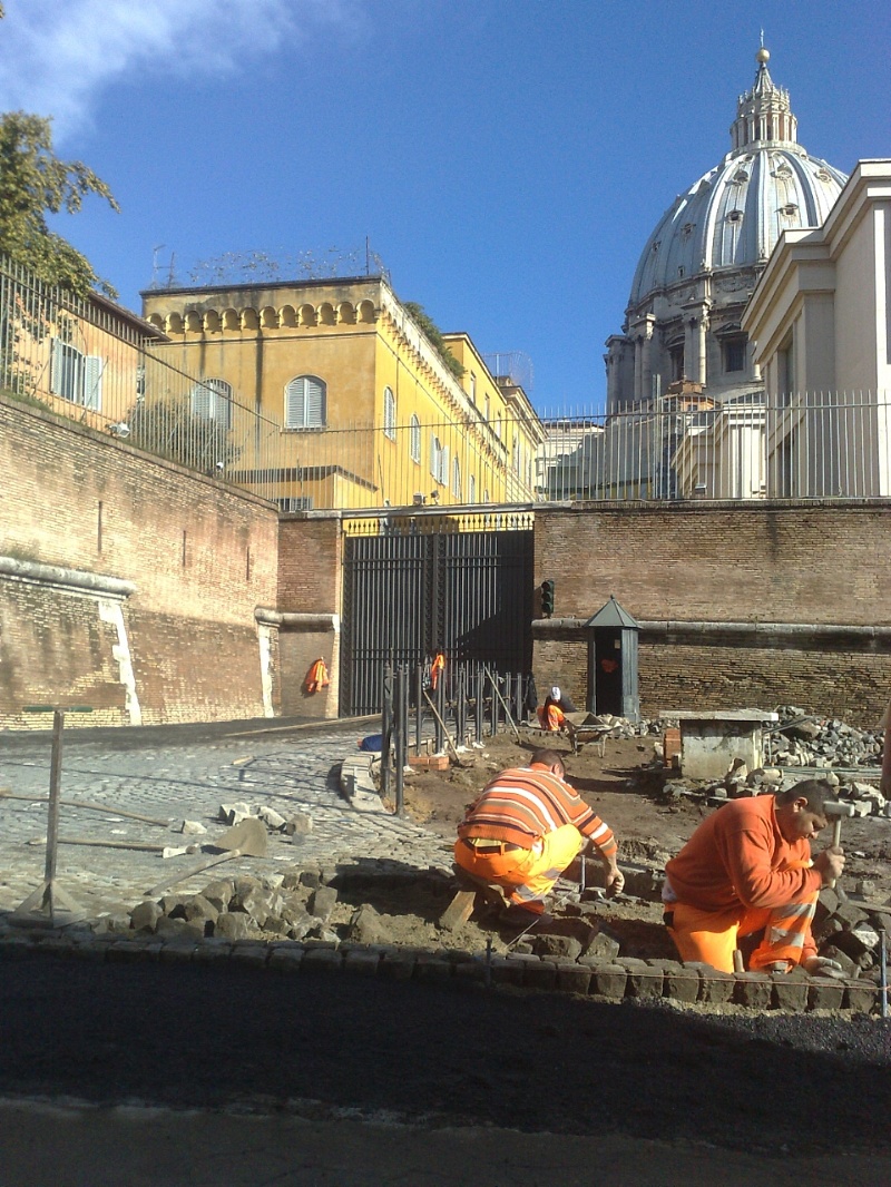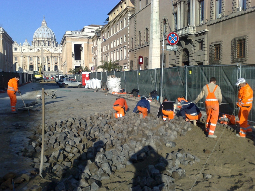 Posa in opera del Selciato Romano da recupero su Via della Conciliazione - Roma - Vaticano , per la beatificazione di Padre Pio...
