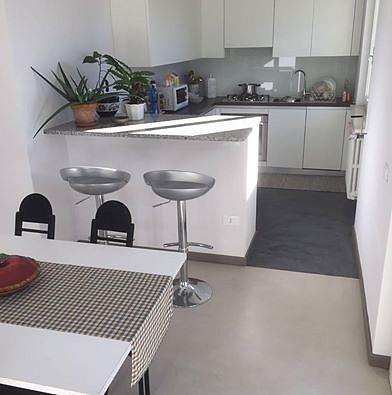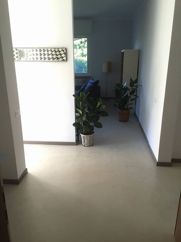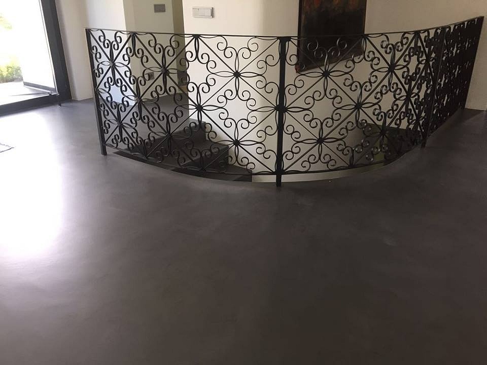 Posa pavimenti e rivestimento scala in microcemento su ceramica esistente nei colori olive grey 50% e nero 50%