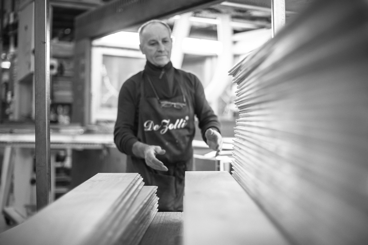 Produzione e vendita diretta di pavimenti in legno massiccio a tre strati, anche su misura.