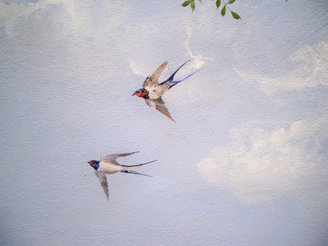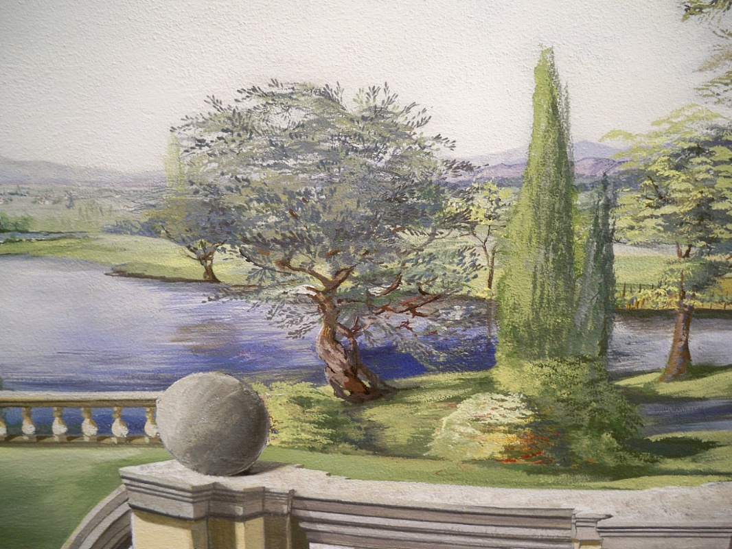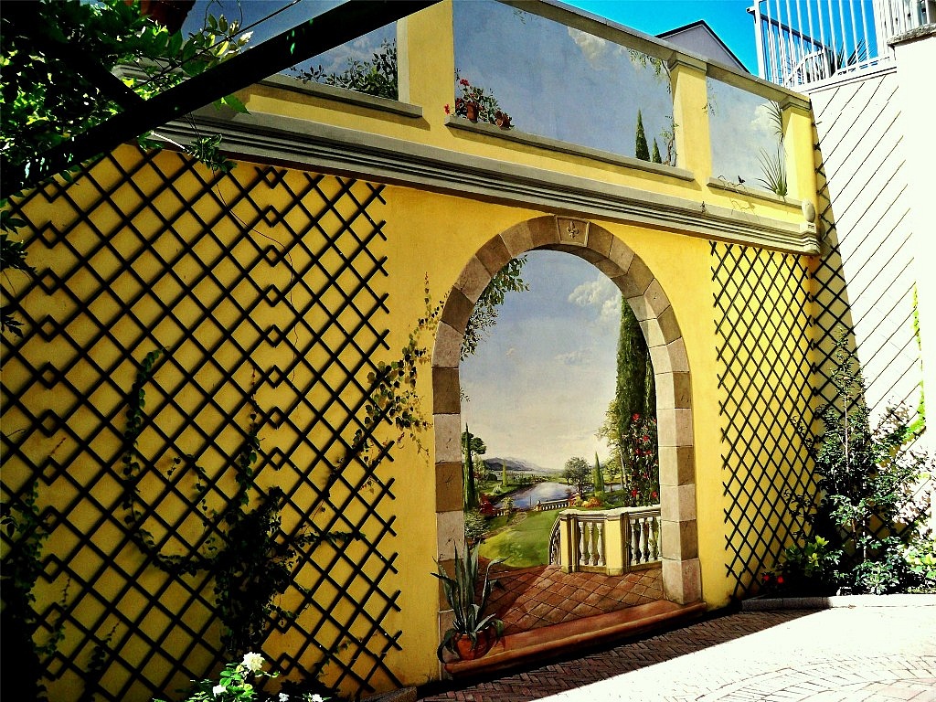Tecnicamente il lavoro è stato eseguito con i colori ai silicati resistenti alle intemperie in quanto il trompe l'oeil è all'esterno.