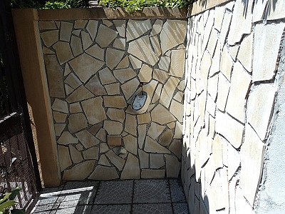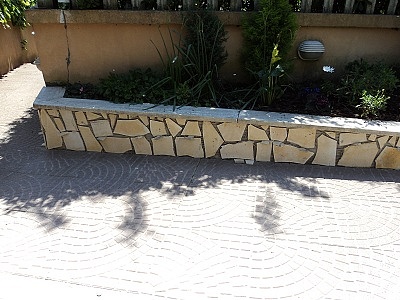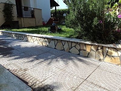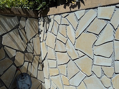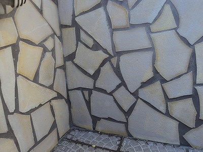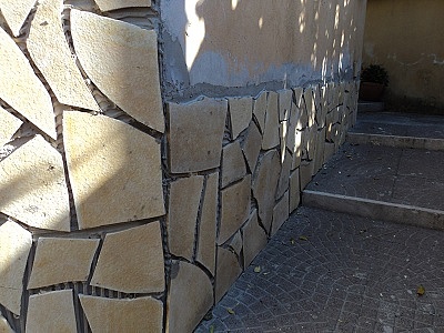 Posa in opera porfido tedesco : intonacatura dei pareti con calce tradizionale,in seguito porfido montato e stuccato.