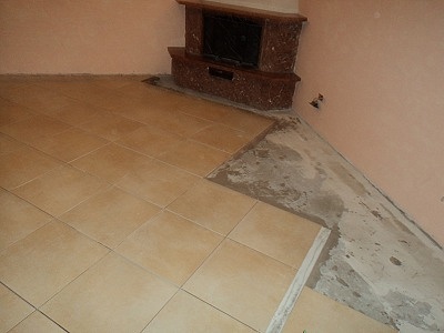 Posa in opera pavimenti 45x45 incollati e montati a rombo