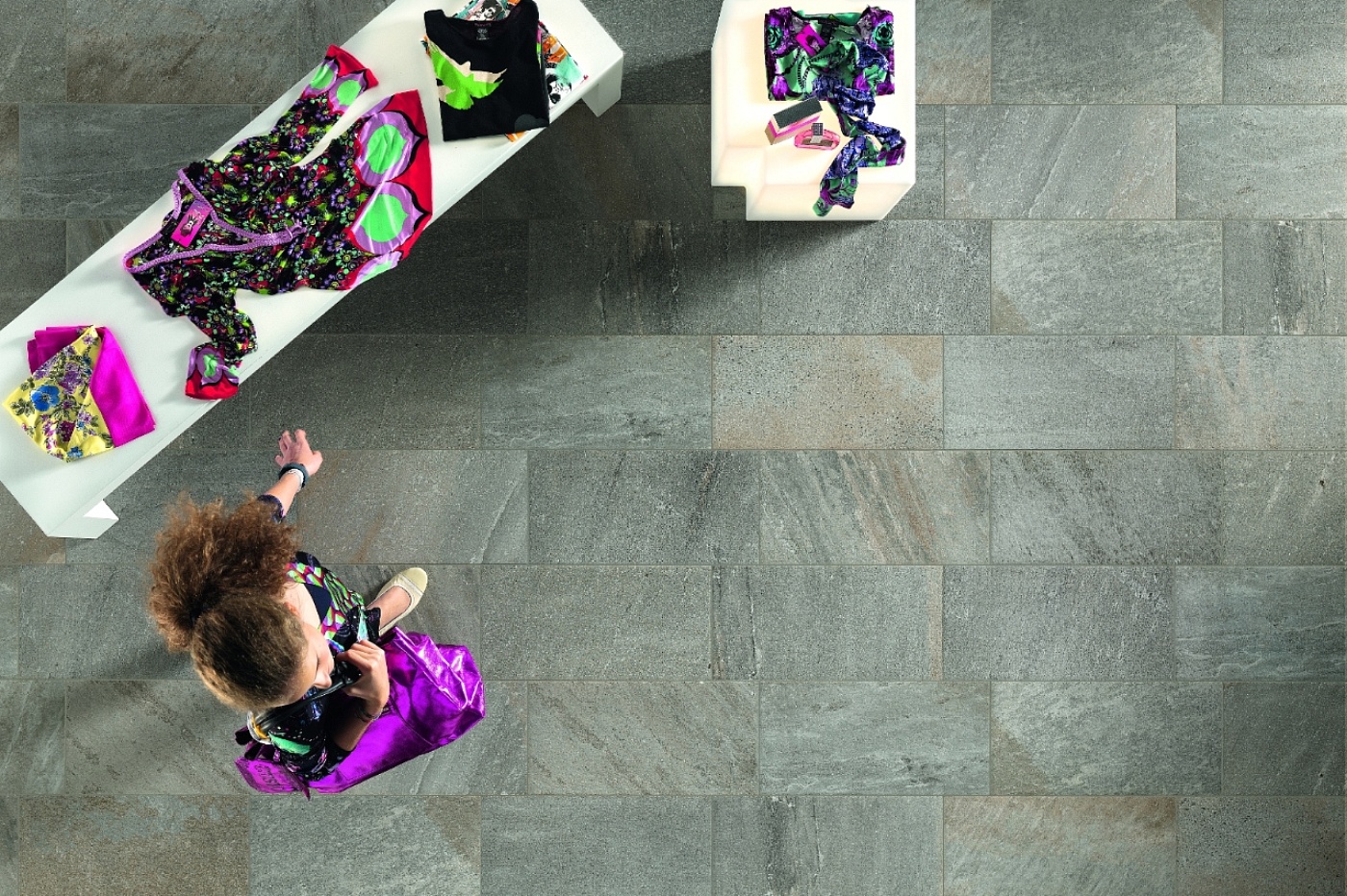 Prodotto in porcellanato smaltato con impasti colorati.