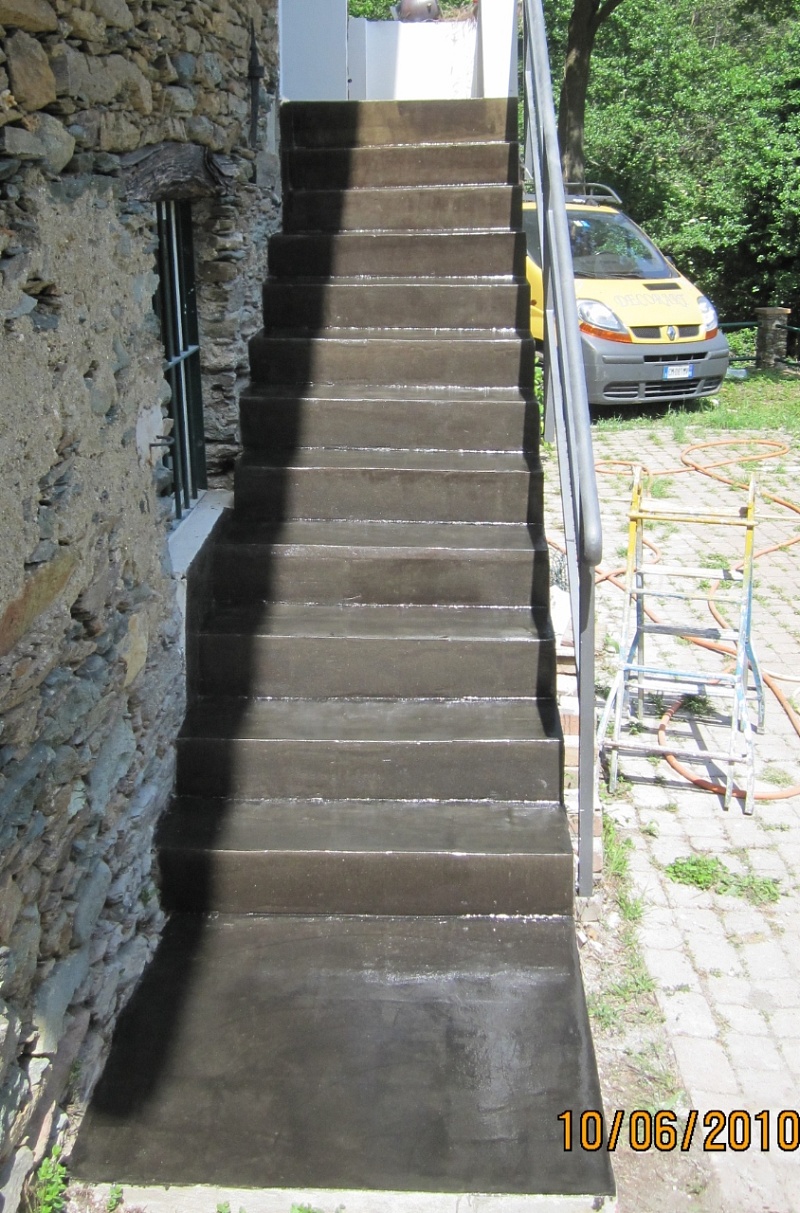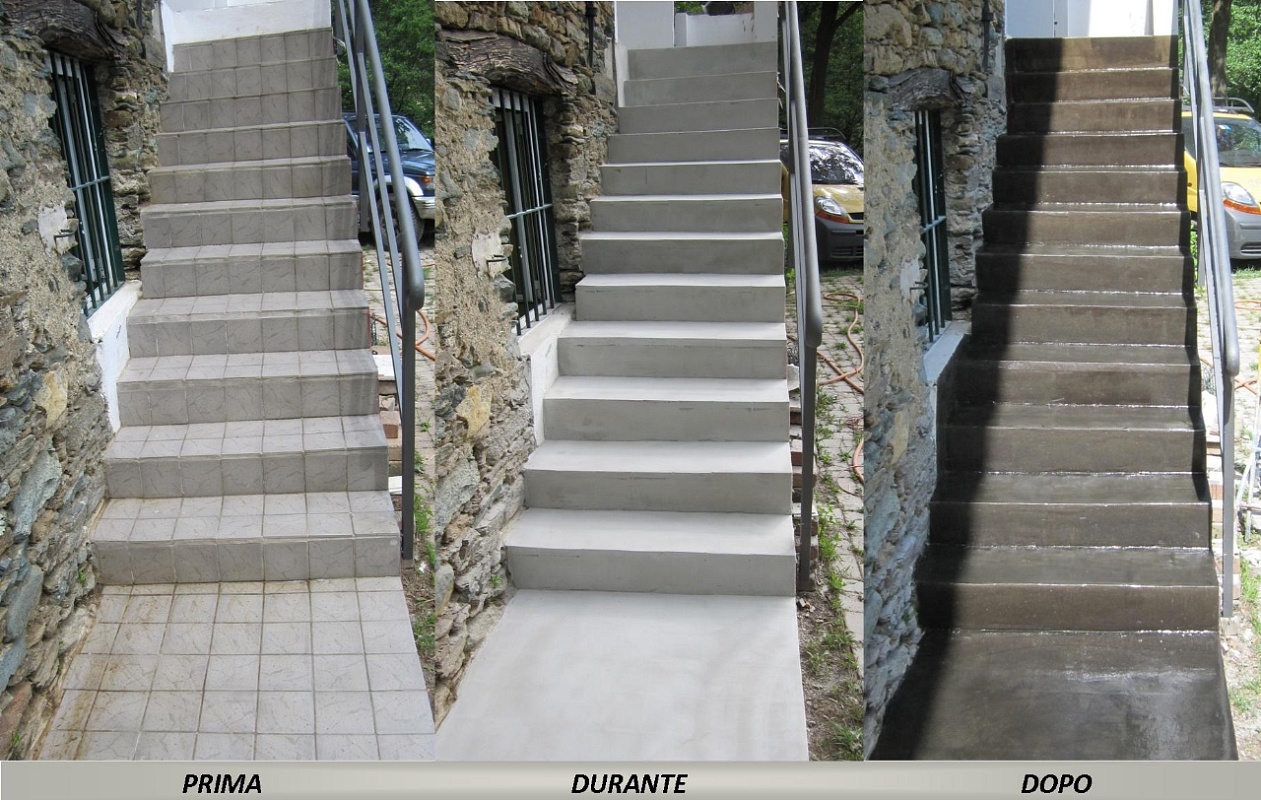 Stratificazione artigianale delle piastrelle esistenti con materiale strutturali, Resine e antiscivolo.