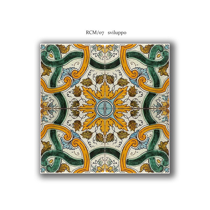 Mattonella in maiolica dipinta a mano,decoro arcaico,cod.RCM 07