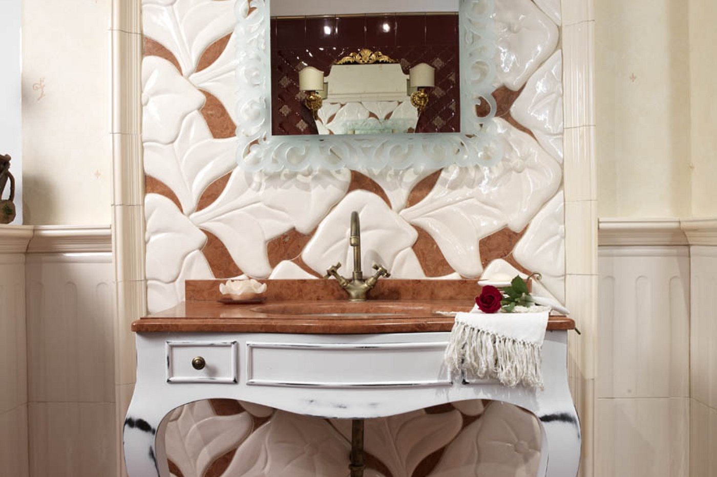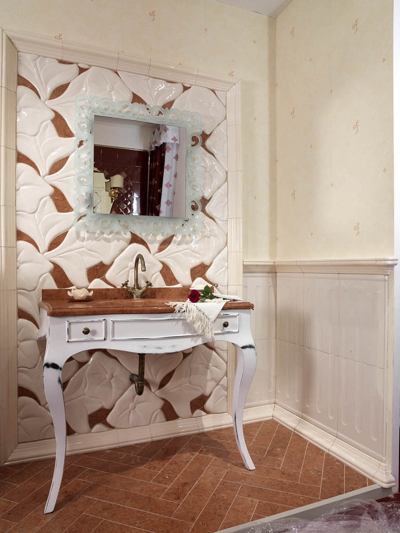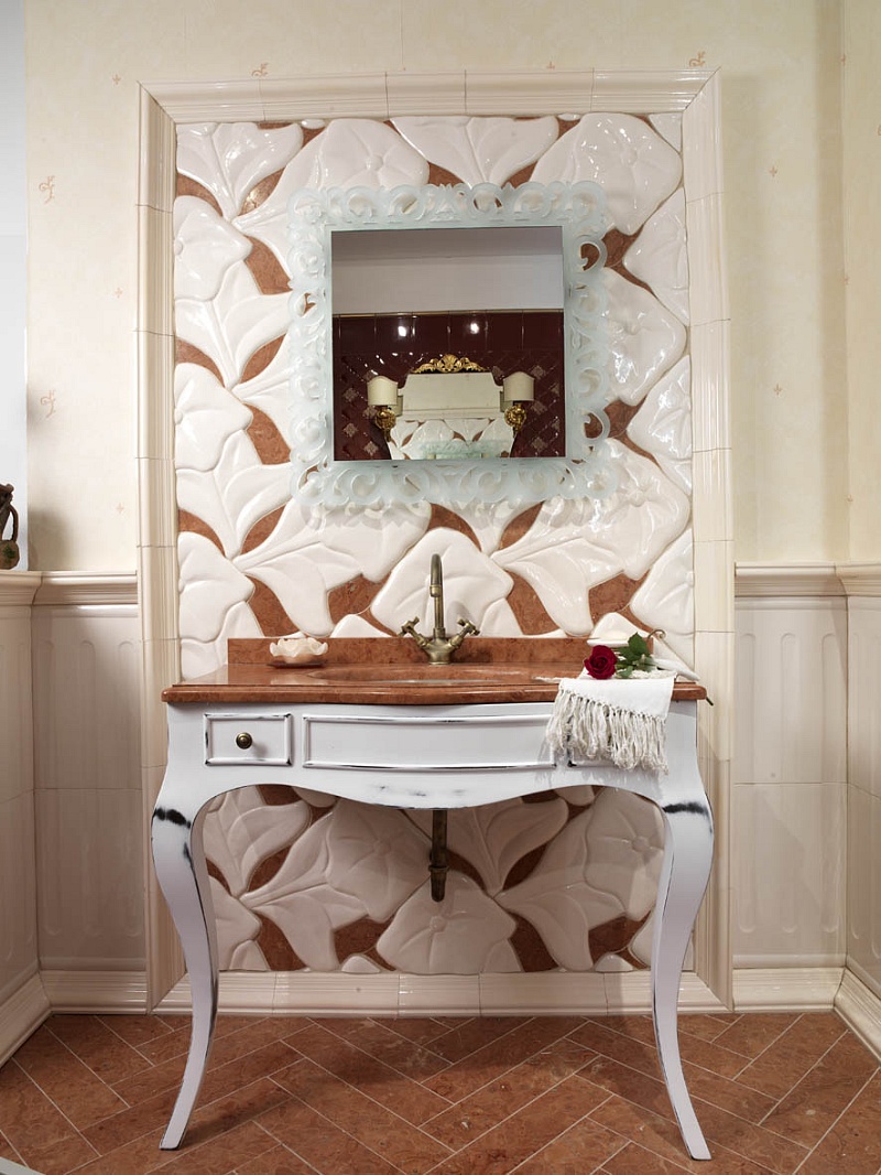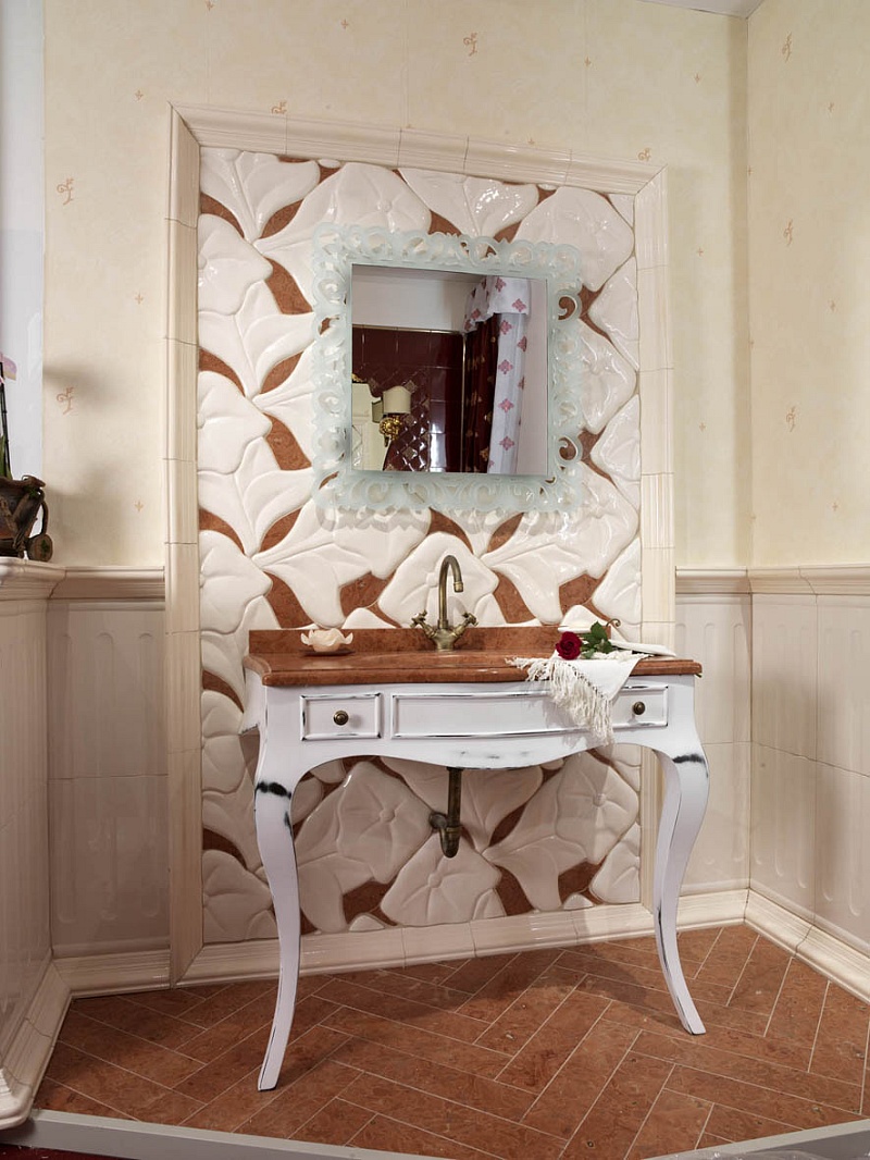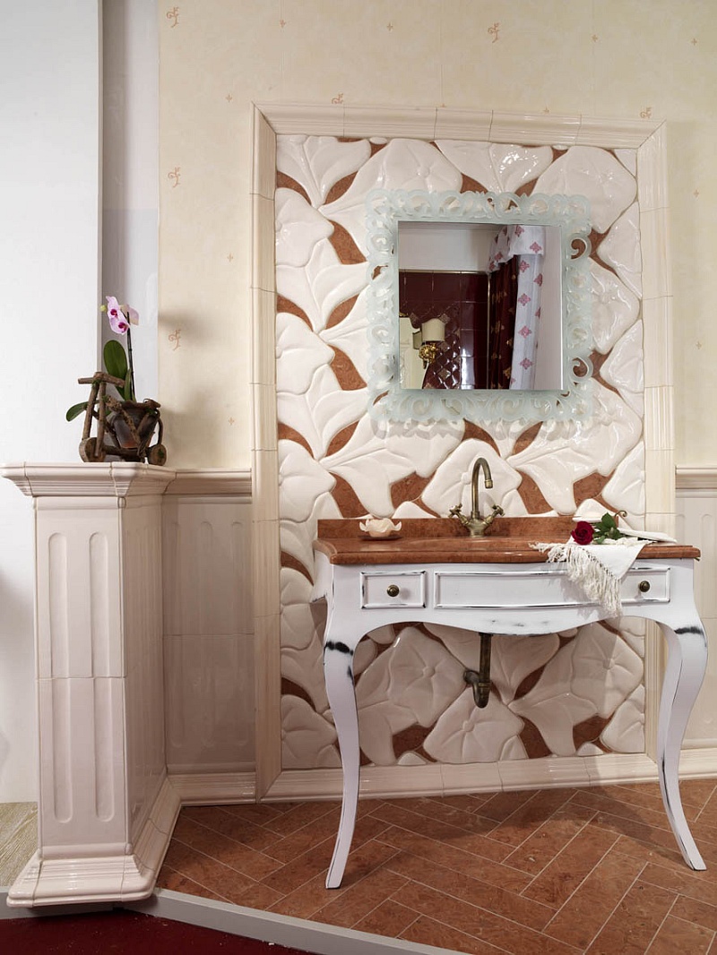 L’intarsio con il marmo naturale completa l’ambiente arricchendolo di un alto contenuto estetico.