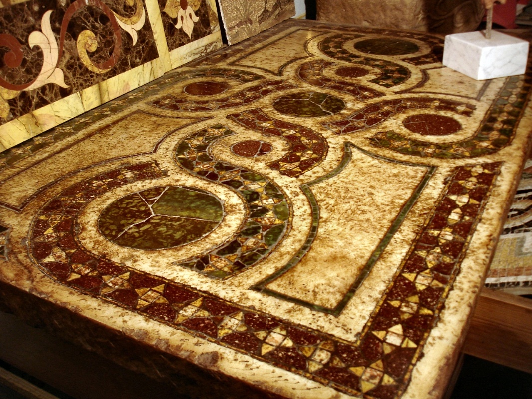 Superfici intarsiate in marmi, pietre e terracotte, realizzate mediante le tecniche antiche